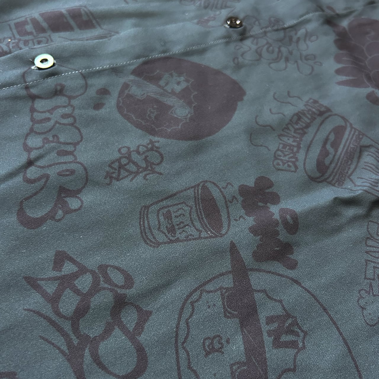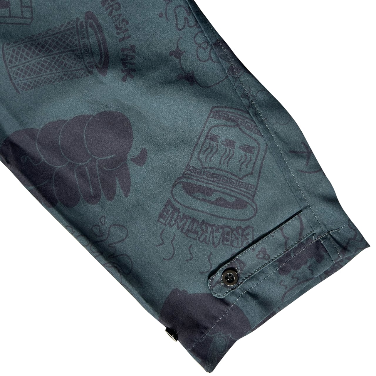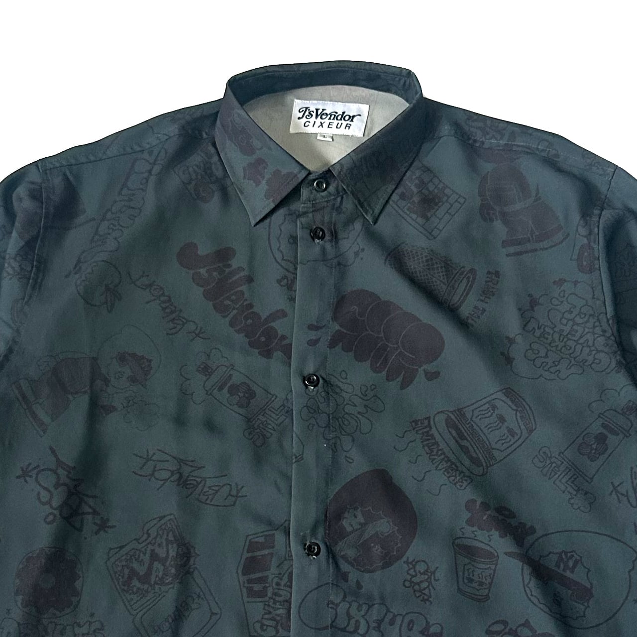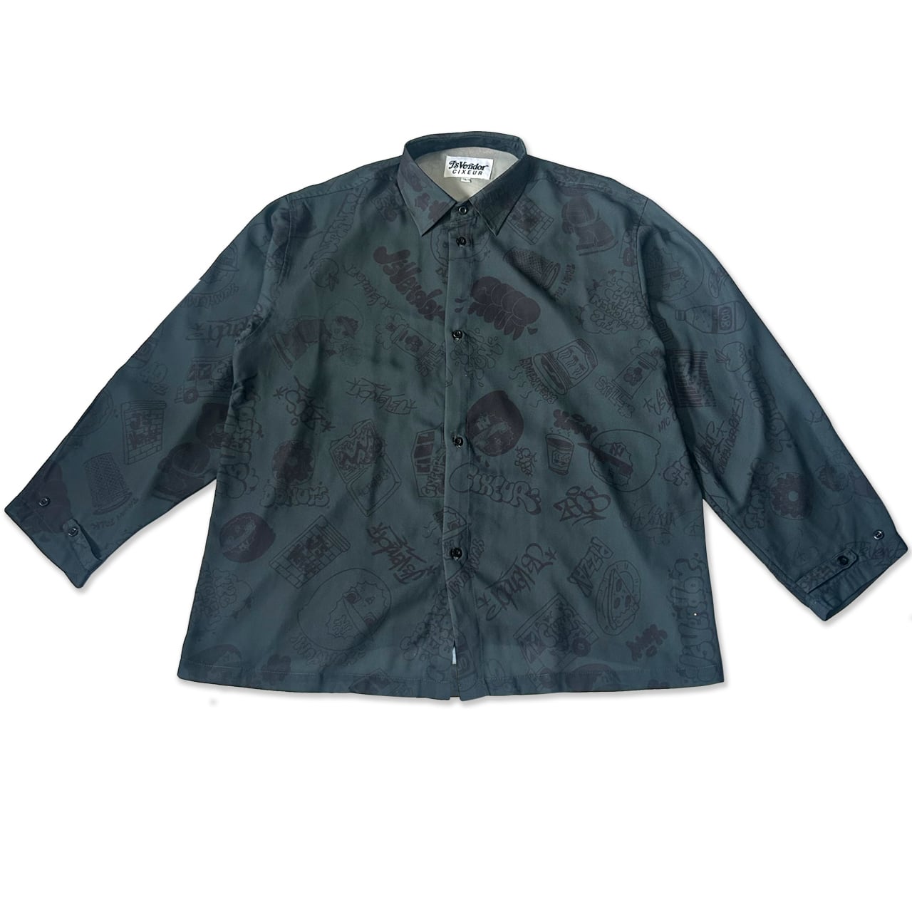 チキンオーバーライス専門店” J`s Vender ”とのコラボアイテム。 チキンオーバーライスをテーマにNYのカルチャーを意識したZECS氏の総柄デザインになっております。 ゆったりしたシルエットが特徴で、少しアダルトな雰囲気のアイテムです。 パンツと合わせてセットアップにもなります