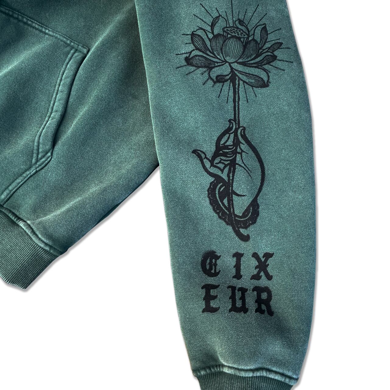 両袖には、彫ぎん氏デザインの美しい蓮の花がプリントされており、