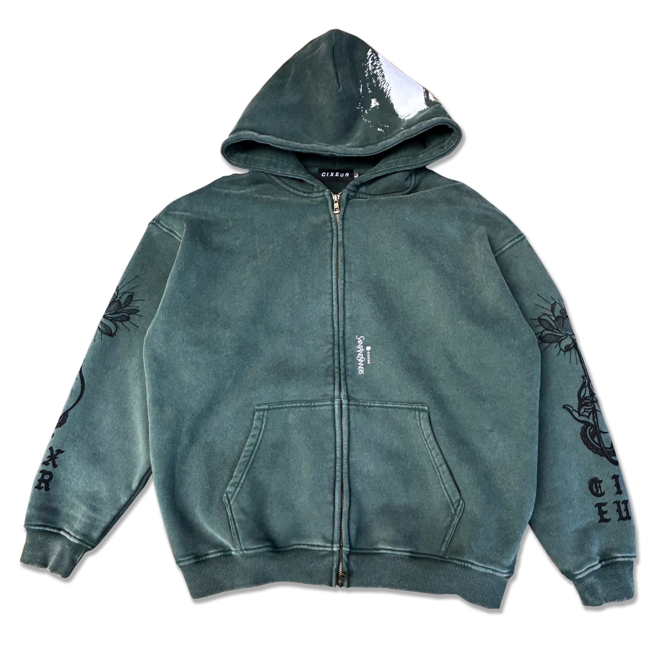 Sweat Hoodie "ROTUS"は、生地にヴィンテージ加工を施したコットンとポリエステル素材を使用し、フワッとした着心地が楽しめるFULL ZIP HOODIEです。ゆったりとしたシルエットと肌触りは、高級感があります。