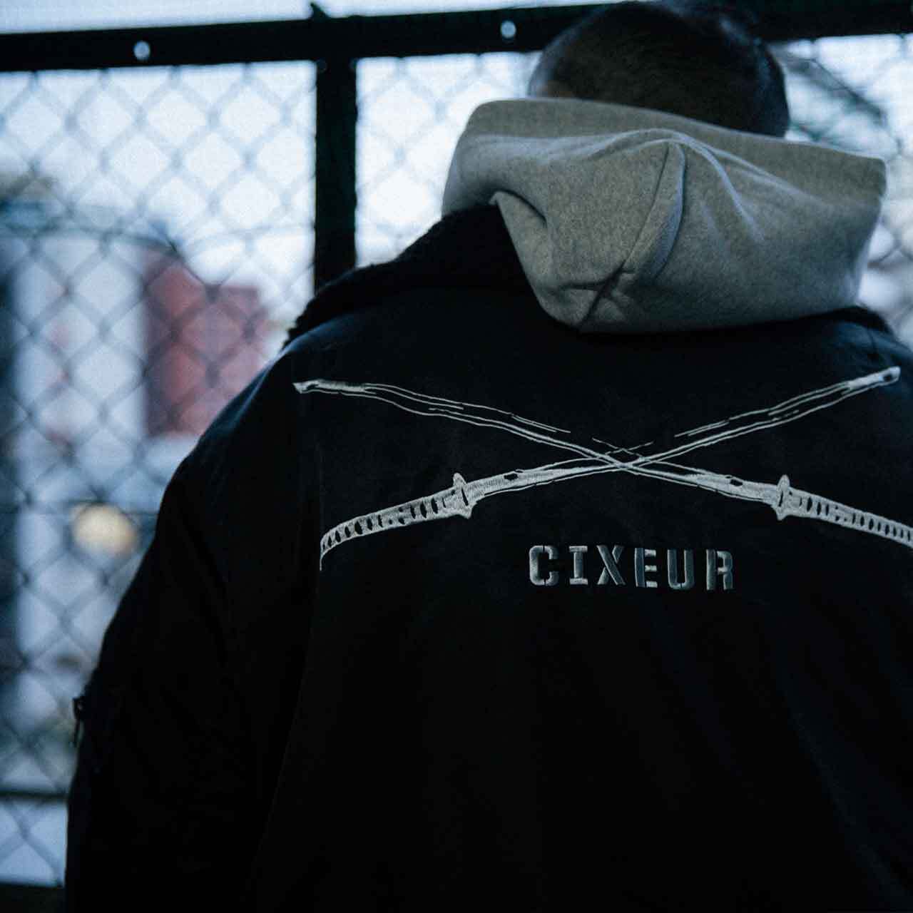 交差した日本刀をシンプルに落とし込んだ定番ロゴにCIXEURをドロップ。また左胸にも、両ブランドを象徴するデザインを刺繍にて表現。きしめんをイメージしたコラボネーム等、名古屋を代表する二つのストリートブランドの拘りが細部にまで詰まっています。