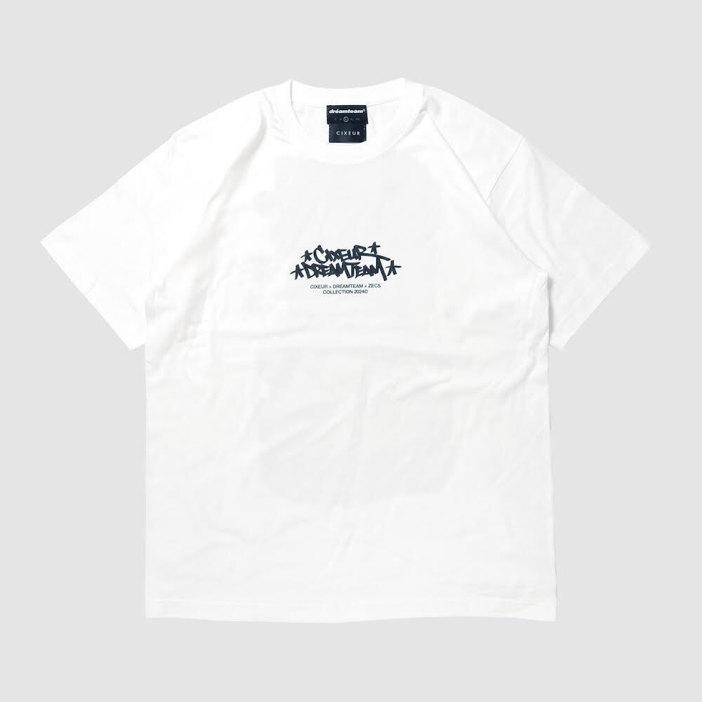 CIXEUR x DREAMTEAM x ZECS コラボ Tシャツ size M: 身丈 68cm / 身幅 52cm / 肩幅 46cm / 裄丈 22cm L: 身丈 72cm / 身幅 55cm / 肩幅 50cm / 裄丈 22cm XL: 身丈 75cm / 身幅 60cm / 肩幅 55cm / 裄丈 23cm XXL: 身丈 80cm / 身幅 65cm / 肩幅 59cm / 裄丈 25cm