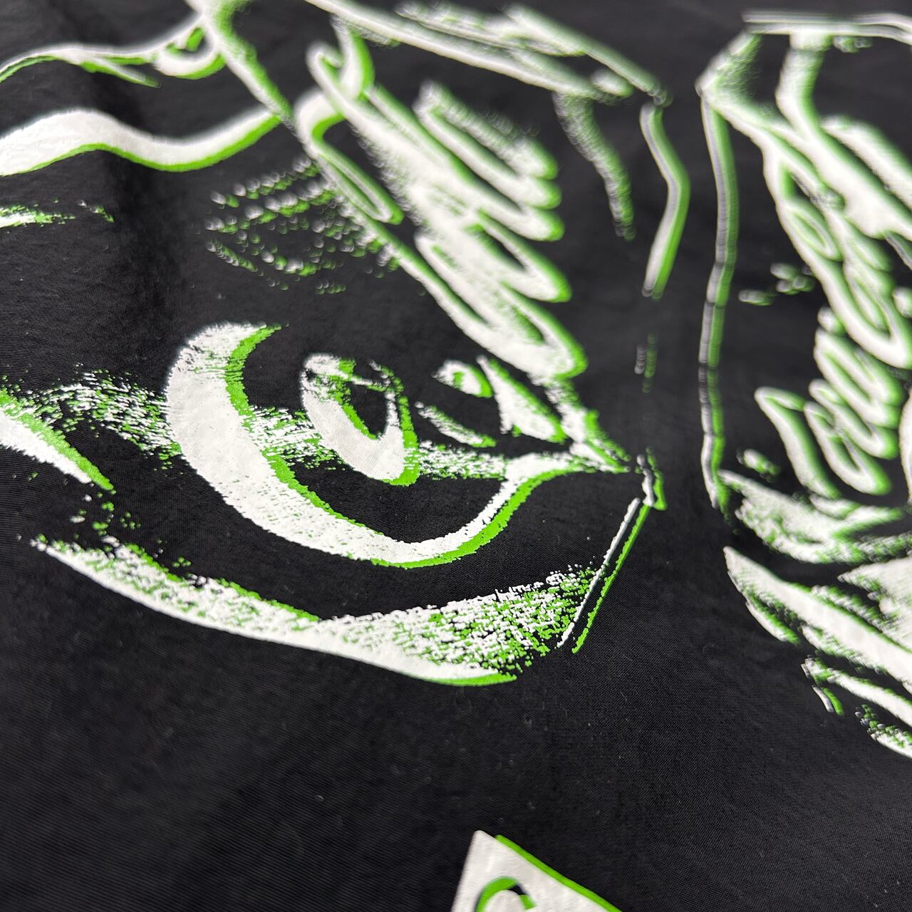 ナイロン 100% のしわ加工生地を採用。 今期のテーマである「New Error Glitch」を表現しており、 ”ブレた”ようなデザインのプリントになっております NEWカラーの限定ライムver. 表地:NYLON100% 裏地:メッシュ部分ポリエステル100% size M:着丈71cm 身巾65cm L:着丈73cm 身巾68cm XL:着丈75cm 身巾71cm